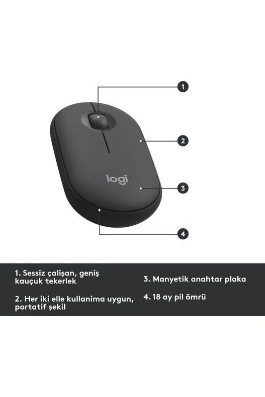 Set içerisinde yer alan kablosuz mouse; yüksek hassasiyetli optik izleme, mekanik kaydırma tekerleği ve 3 düğmeli ergonomik tasarımıyla hem sağ hem sol el kullanımına uygundur. Laboratuvar ortamında test edilmiş sessiz tıklama teknolojisi sayesinde, dikkat dağıtmadan çalışmanıza olanak tanır.