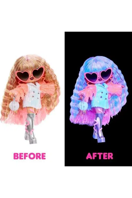 Her biri adeta bir pop yıldızı gibi giyinen bu özel bebekler, seni mor ışıkta parlayan sürprizlerle şaşırtacak.
