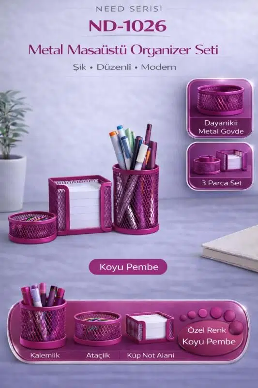 Ofis malzemeleriniz için mükemmel bir çözüm arıyorsanız, MasaÜstü Kalemlik Seti tam size göre!