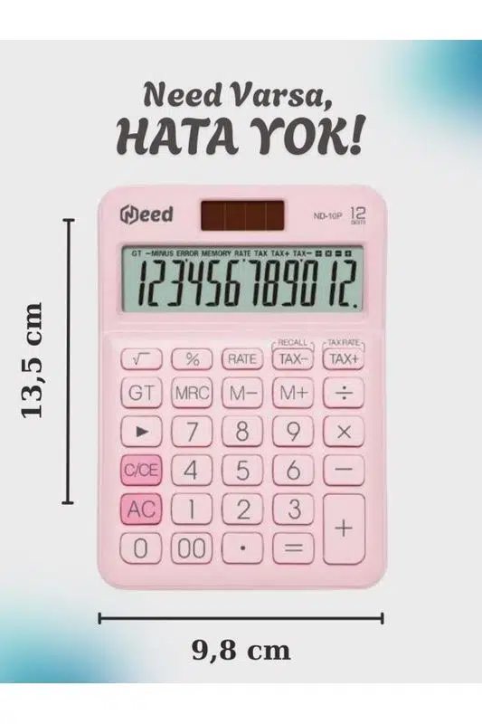 Hem estetik hem de fonksiyonel yapısıyla Need ND-10P, hesap makinesi ihtiyacınız için mükemmel bir tercihtir. Şimdi sipariş verin, hesaplamalarınızda fark yaratın!