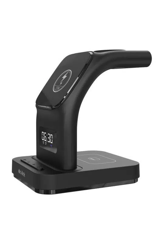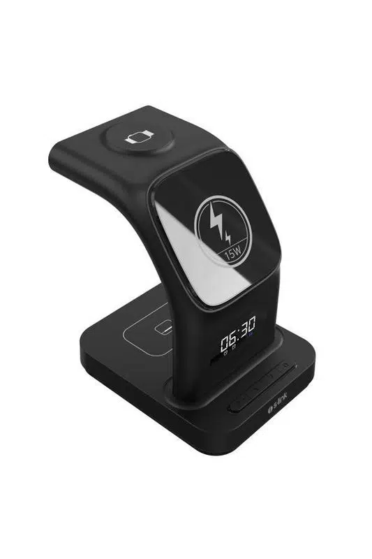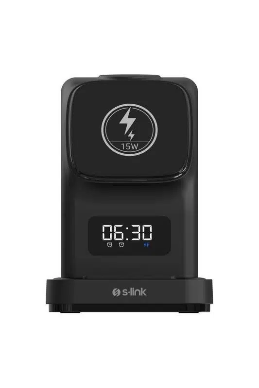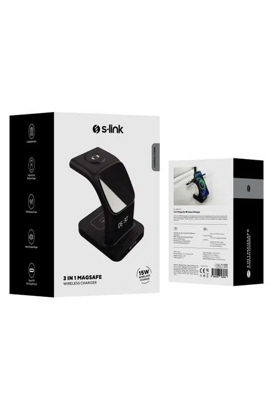 S-link SW-CWF130, telefon, kulaklık ve akıllı saatinizi aynı anda şarj edebilmenizi sağlayan, modern tasarımlı 3’ü 1 arada MagSafe kablosuz şarj istasyonudur. Şık siyah rengi, kompakt yapısı ve LED logolu premium görünümüyle hem ev hem ofis kullanımı için ideal bir çözümdür.