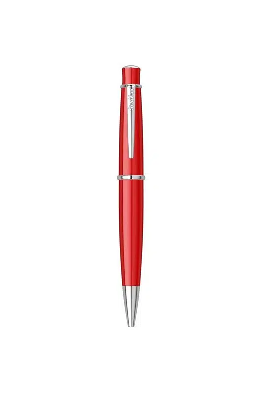 Scrikss Chic 62 Tükenmez Kalem Kırmızı, modern tasarım anlayışı ile dikkat çekici renkleri bir araya getiren zarif bir yazım aracıdır. Parlak kırmızı lake kaplama gövdesi ve krom kaplama metal aksesuarları sayesinde hem güçlü hem de stil sahibi bir görünüm sunar. Günlük kullanımda, ofis ortamında veya özel notlarınızı yazarken şık bir tamamlayıcı olarak öne çıkar.