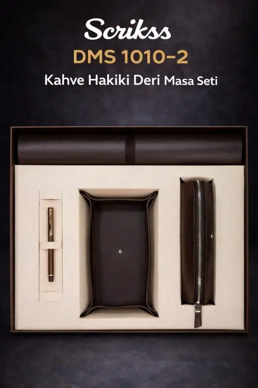 El işçiliğiyle özenle hazırlanan set; modern ofis anlayışına uygun minimalist tasarımı ve kaliteli detaylarıyla dikkat çeker. İçerisinde yer alan Scrikss 64 Roller kalem ise akıcı yazım deneyimiyle profesyonel kullanım için ideal bir tamamlayıcıdır.