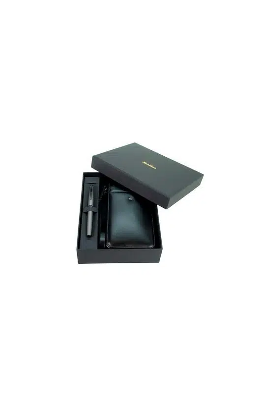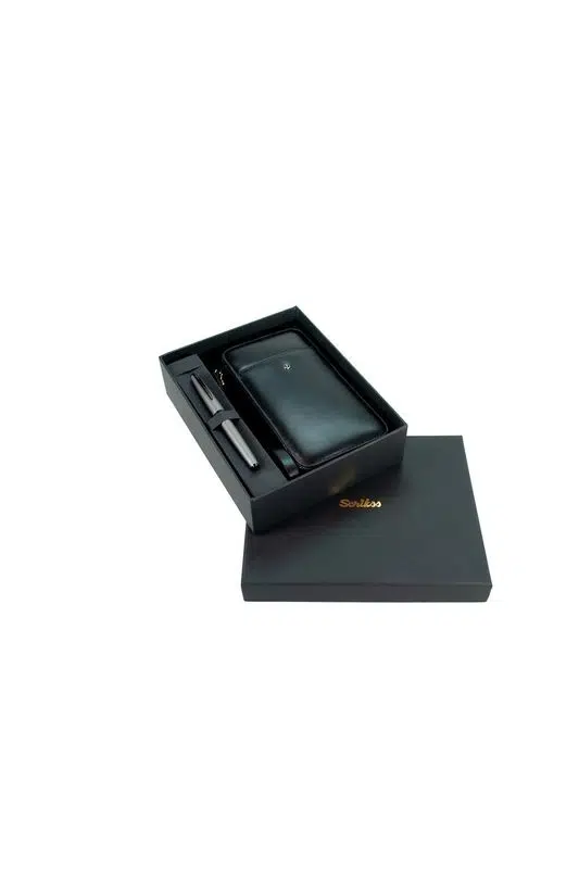 Scrikss DR 2010-S1 Hakiki Deri El Çantası Siyah & Metropolis 78MG Mat Gri Roller Kalem Seti