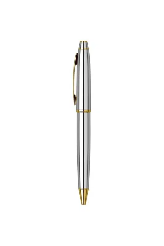 Scrikss Noble 35 Tükenmez Kalem Krom Altın – Lüks Metal Gövdeli Çevirmeli İmza Kalemi