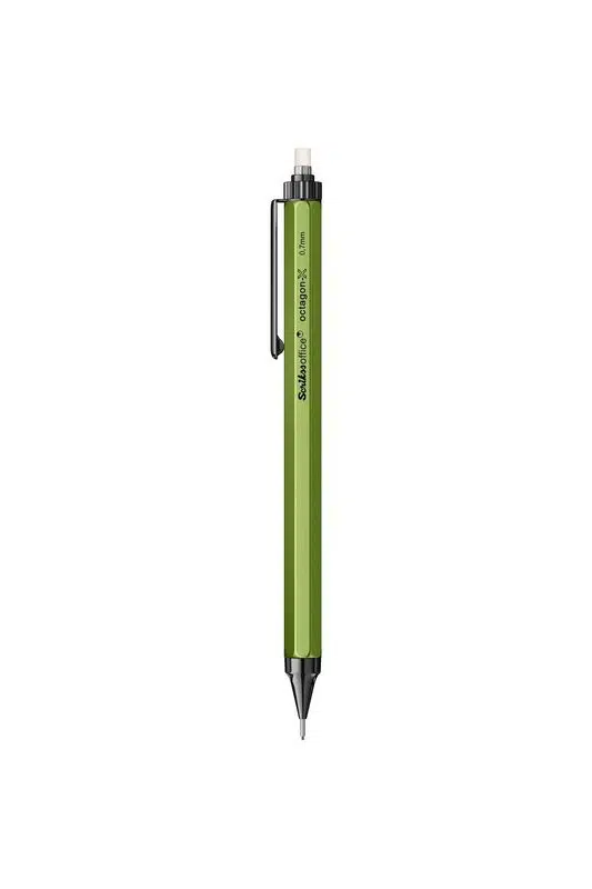 Scrikss Octagon-X Mekanik Kurşun Kalem 0.7 mm Yeşil, modern tasarımı ve sağlam metal gövdesi ile hem şık hem de dayanıklı bir yazım deneyimi sunar. Mat yeşil yüzeyi ve metal detayları sayesinde masa üzerinde premium bir görünüm oluşturur ve profesyonel kullanım için ideal bir alternatiftir.
