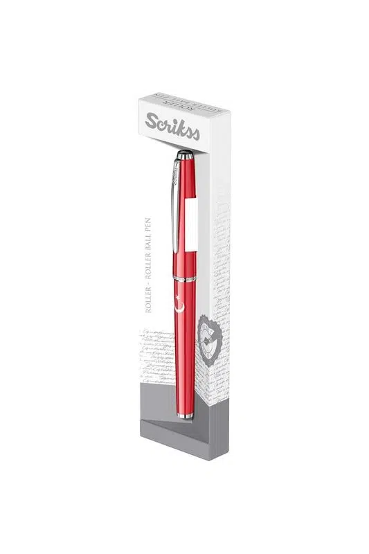 Parlak kırmızı akrilik gövdesi üzerine uygulanan ay-yıldız baskı detayı, kaleme güçlü ve karakteristik bir görünüm kazandırır. Krom kaplama metal klips ve aksesuarlar ise kalemin şık ve dayanıklı yapısını tamamlar. Ergonomik tasarımı sayesinde uzun süreli yazımlarda konfor sağlar ve kaliteli refil sistemi ile akıcı bir yazım deneyimi sunar.