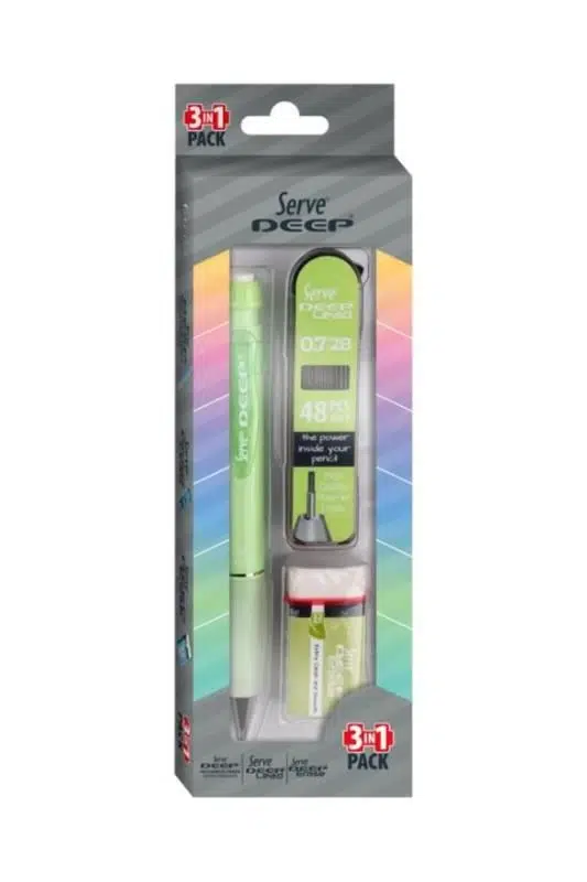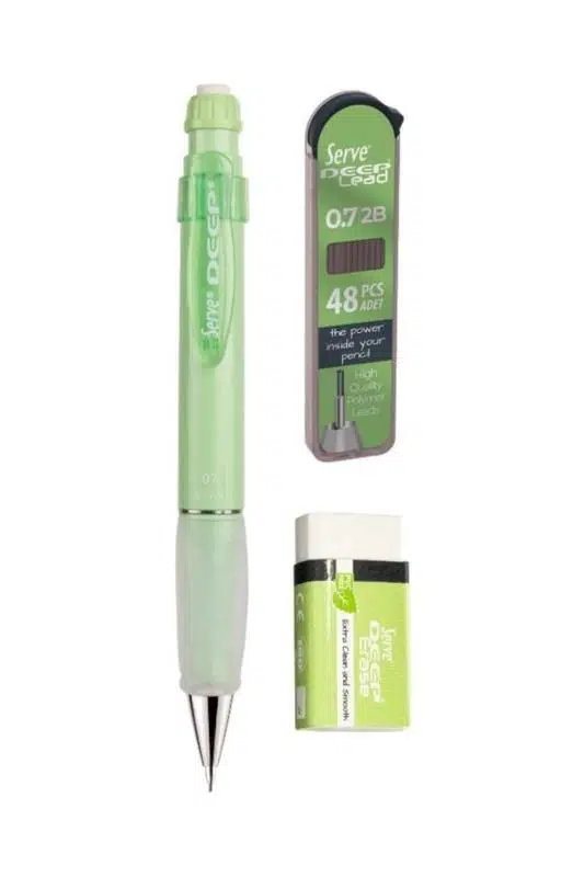 Serve Deep 0.7 mm Versatil Kalem Seti – Elma Yeşili (Kalem + 48’li 2B Min + Silgi)