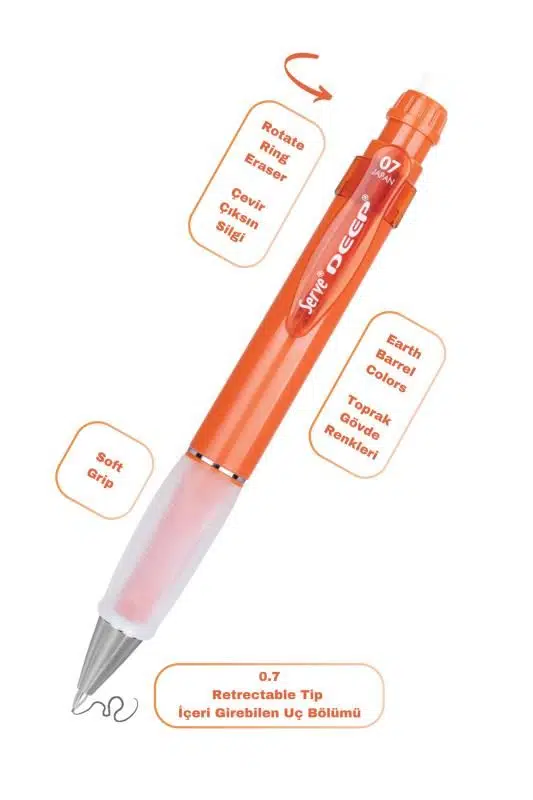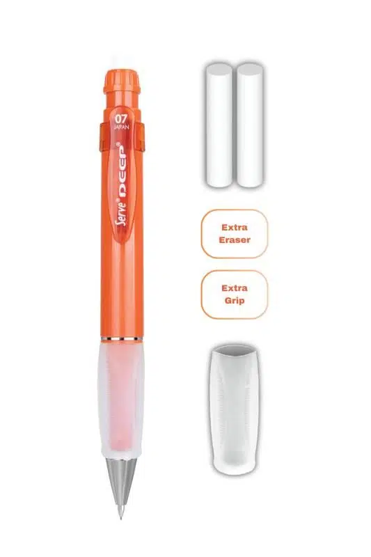 Konforlu ve akıcı bir yazım deneyimi sunan Serve Deep 0.7 mm Kalem Grip & Silgi Yedekli Set – Kiremit, ergonomik kavrama (grip) özelliği sayesinde uzun süreli kullanımlarda ekstra rahatlık sağlar. Dayanıklı mekanik yapısı ve kaliteli uç sistemi ile okulda, ofiste ve günlük kullanımda net ve temiz yazım performansı sunar.