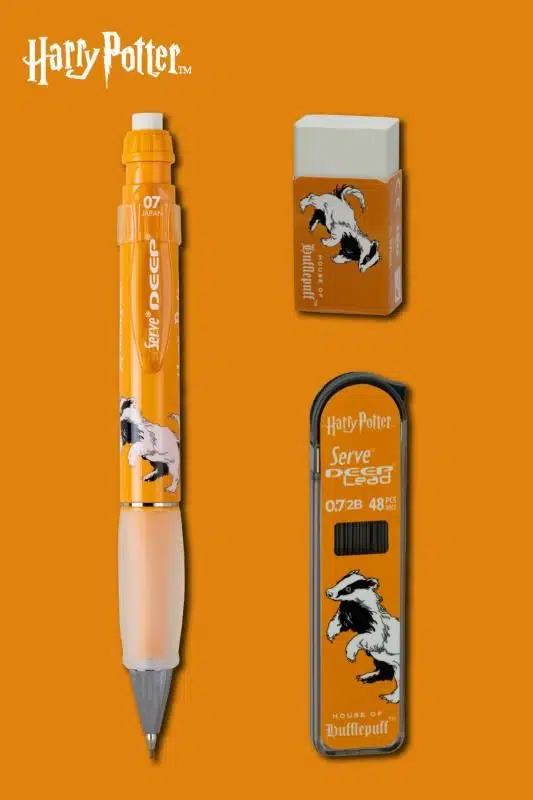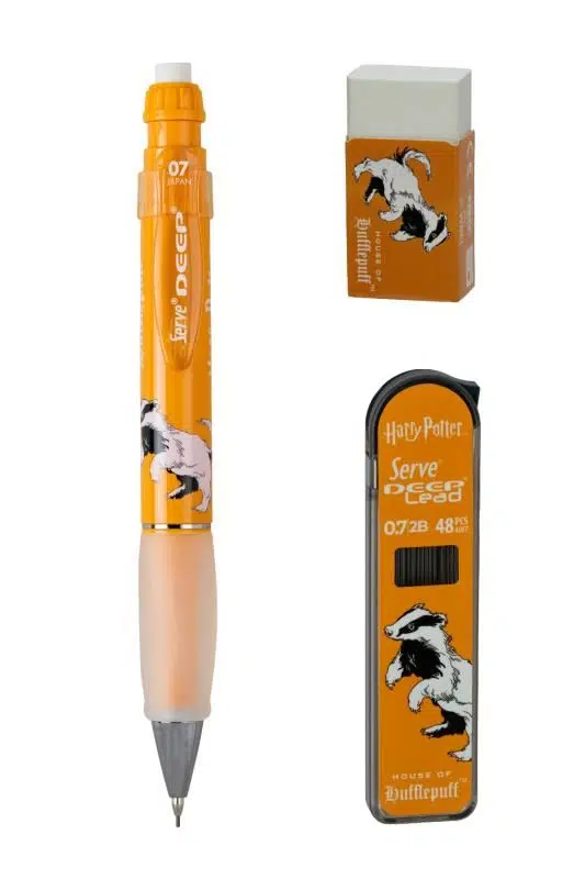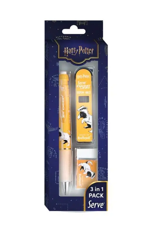 Serve Deep Üçlü Set 0.7 mm – Harry Potter Koleksiyonu Mekanik Versatil Kalem, 2B Min (48’li) & PVC’siz Silgi Seti - Hardal Sarı