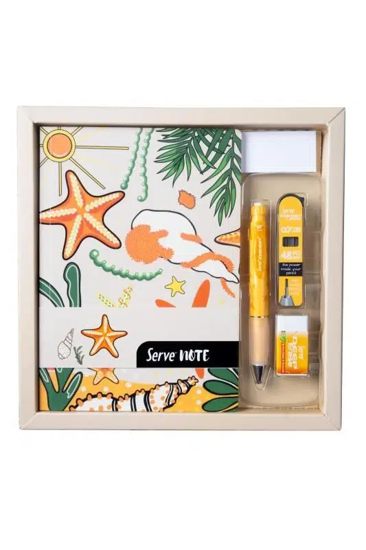 Serve Defter Seti Desenli Hardal Sarı Kutulu