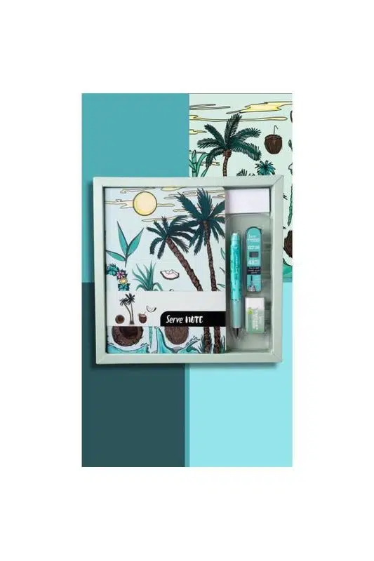 Serve Defter Seti Desenli Nane Yeşili Kutulu