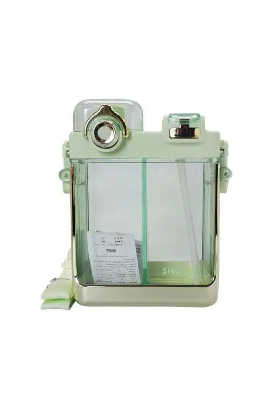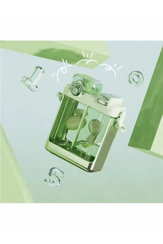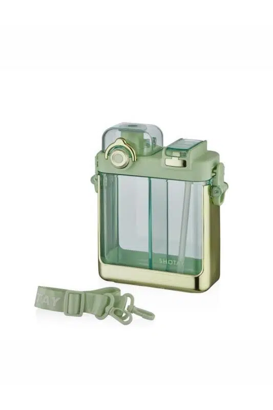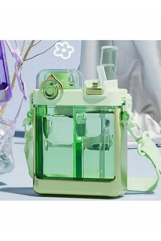 Shotay Tritan Çift Bölmeli Kawaii Su Matarası – 700 ml, Şeffaf Kapaklı, Pipetli & Emzikli, Askılı, Yeşil