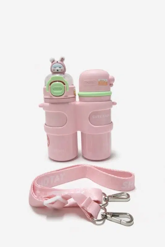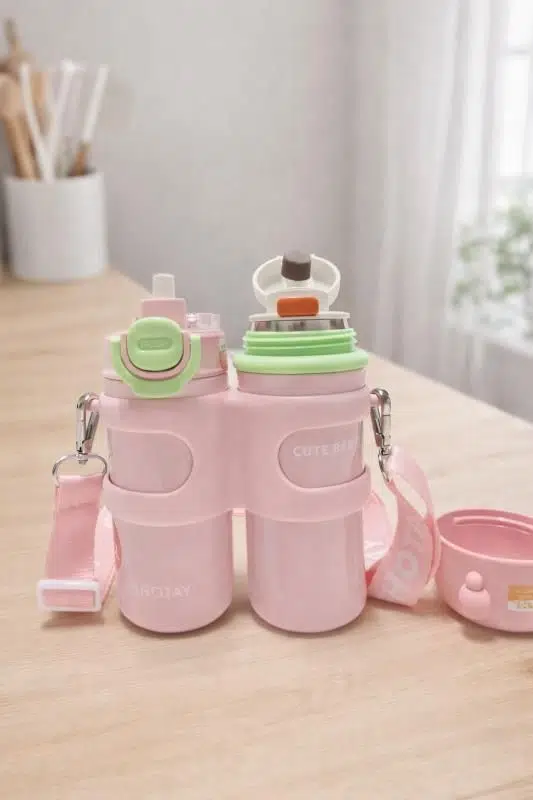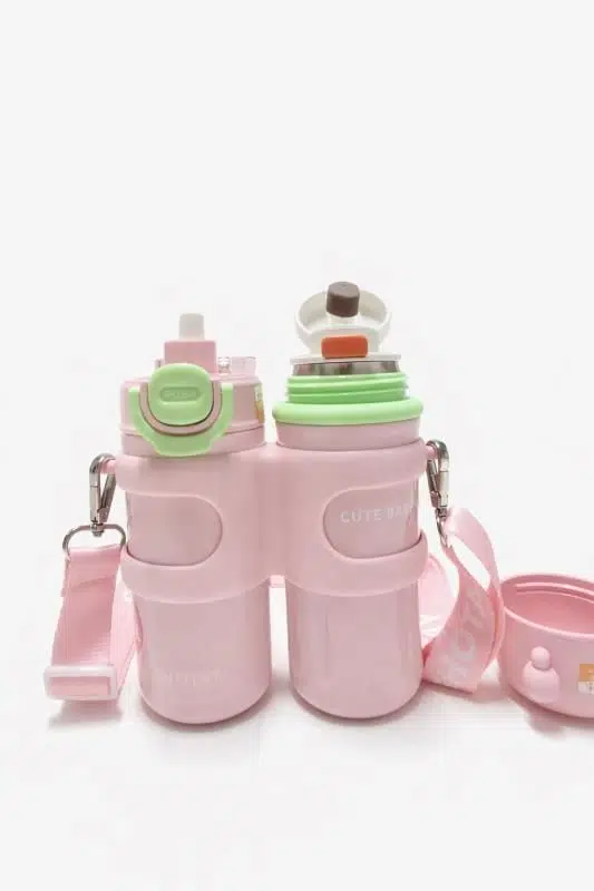 Shotay Termos Matara 330 ml + 330 ml kapasitesiyle, çocuklar için özel olarak tasarlanmış çift hazneli ve güvenli bir termos mataradır. Sevimli pembe rengi, ergonomik yapısı ve pratik kullanımıyla günlük kullanım, okul ve dış mekân aktiviteleri için idealdir.