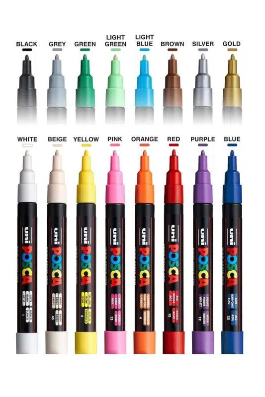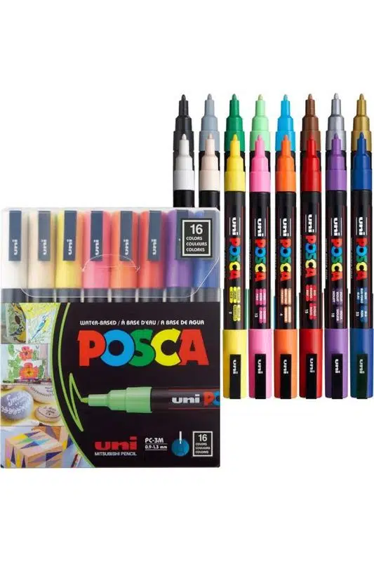 Uni Posca PC-3M 16’lı Marker Seti; çizim, süsleme, kişiselleştirme ve dekorasyon projelerinde sınırsız yaratıcılık sunar